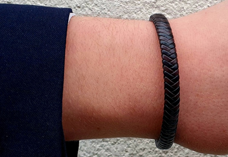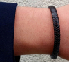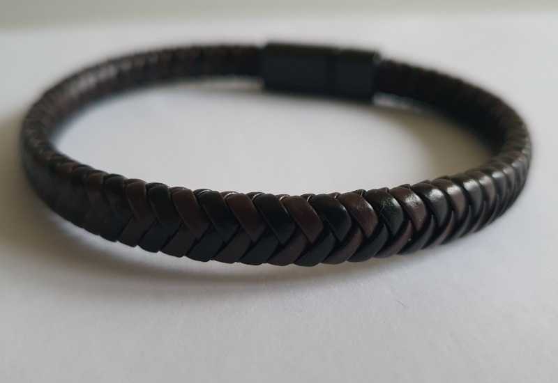 Tillverkat i äkta, mjukt läder med handflätad struktur som kombineras med detaljer i rostfritt stål. Ett elegant uttryck av hantverk och kvalitet – perfekt för den som vill bära en sofistikerad detalj med karaktär.