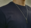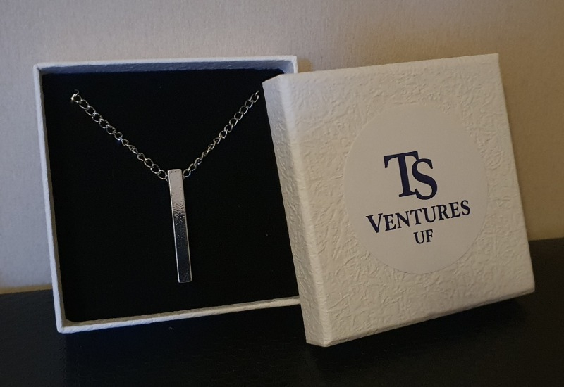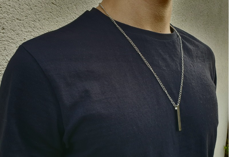 Ett stilrent halsband i rostfritt stål med ett elegant, rektangulärt hänge. Den minimalistiska designen förmedlar både styrka och finess, vilket gör det till ett självklart val för den moderna gentlemannen.