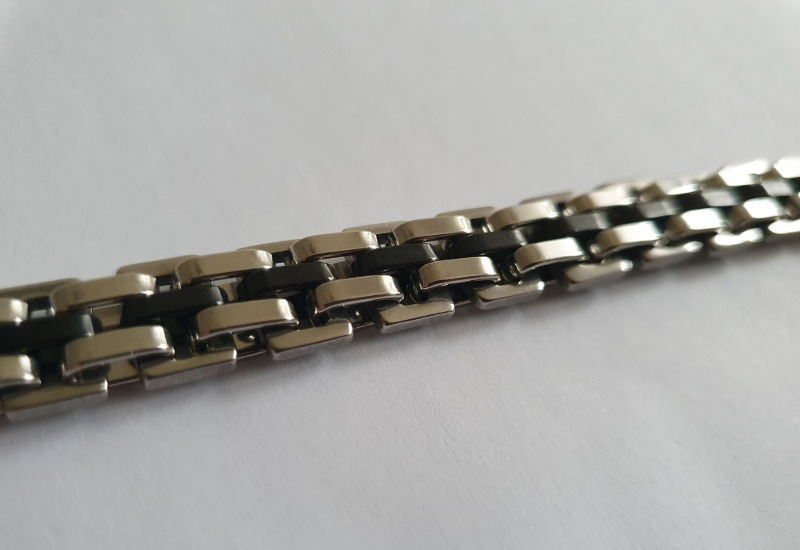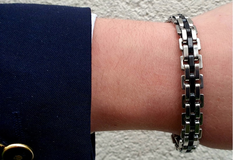 Ett exklusivt armband i rostfritt stål med en distinkt kombination av silver och svart. Den unika kontrasten mellan tonerna ger ett modernt och kraftfullt uttryck – en accessoar som symboliserar styrka, precision och stil.