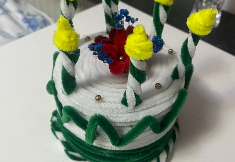 tårta gjord av piprensare