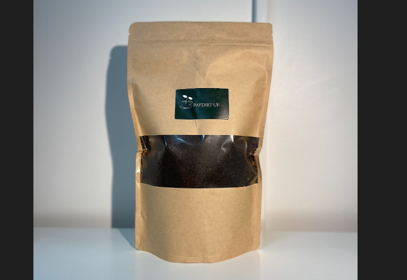 750 grams påse med jordnäring gjort på torkad kaffesump och kompostjord.