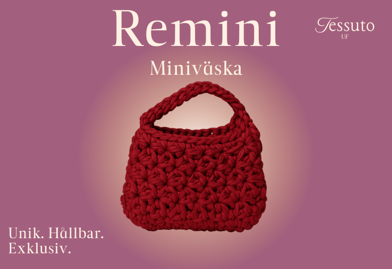 Remini är vår nya vardagsväska. Den är utformad som en kompakt handväska, som rymmer det mest nödvändiga: nycklar, telefon, plånbok och andra småsaker. Tack vare sin smidiga storlek passar den perfekt både till vardags, på stan eller vid fester. Remini följer samma hållbara principer som våra övriga produkter – handvirkad, unik och tillverkad av återvunnet garn. Den finns i flera färger och kombinerar enkelhet med elegans, vilket gör den till ett självklart val för den som vill ha en stilren.