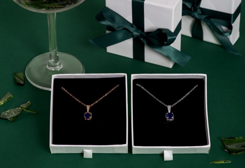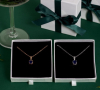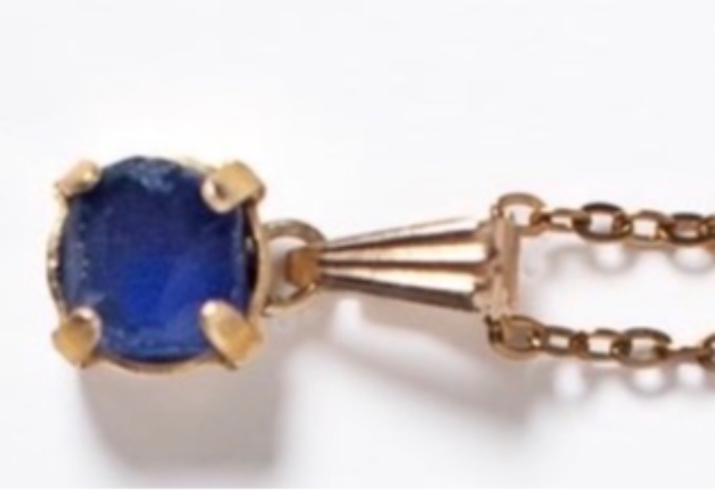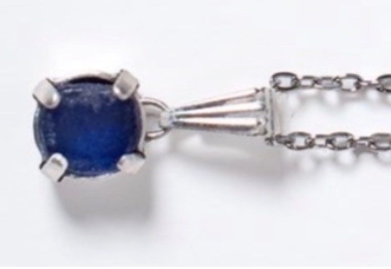 Handgjorda halsband gjorda av återvunna glasflaskor. Vitrias mörkblåa halsband är gjort av en gammal ölflaska.