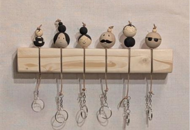 I den färdigdesignade produkten kommer vi bygga ihop olika “gubbar” med träkulor. Genom att kombinera olika storlekar och ansikten vill vi skapa några alternativ att välja mellan. För att bredda vår målgrupp kommer alternativet att välja hur många nycklar som ska hängas upp erbjudas.