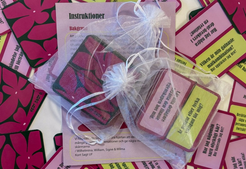 Vi säljer ett kortspel som passar för alla tillfällen. Varje kort innehåller frågor som både handlar om att lära känna de du spelar med men också öppnar upp för djupa samtal. Med väl valda frågor bygger du hållbara relationer till de du spelar med!