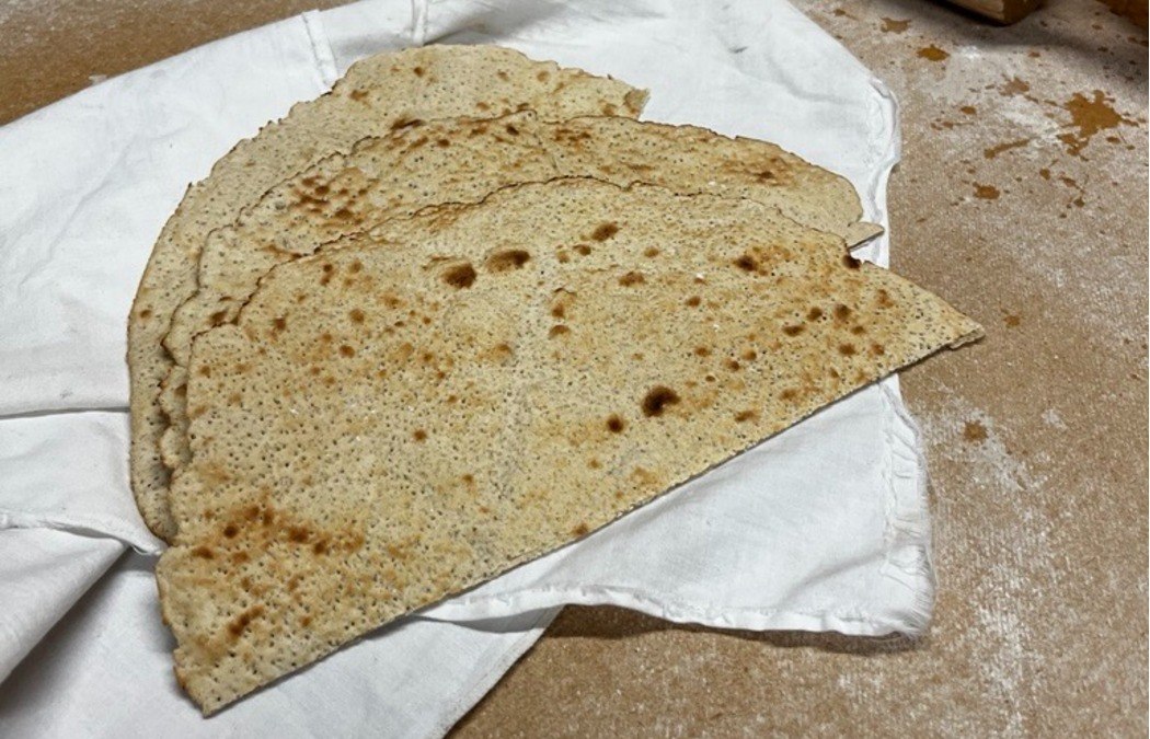 Ett mjukt hembakt tunnbröd där vi även erbjuder alternativ smaksättning. Vi säljer brödet i två smaker, en naturell smak och vårt smaksatta bröd med smakerna vitlök, timjan och rosmarin. Brödet är bakat i lokal bagarstuga i vedeldad ugn.