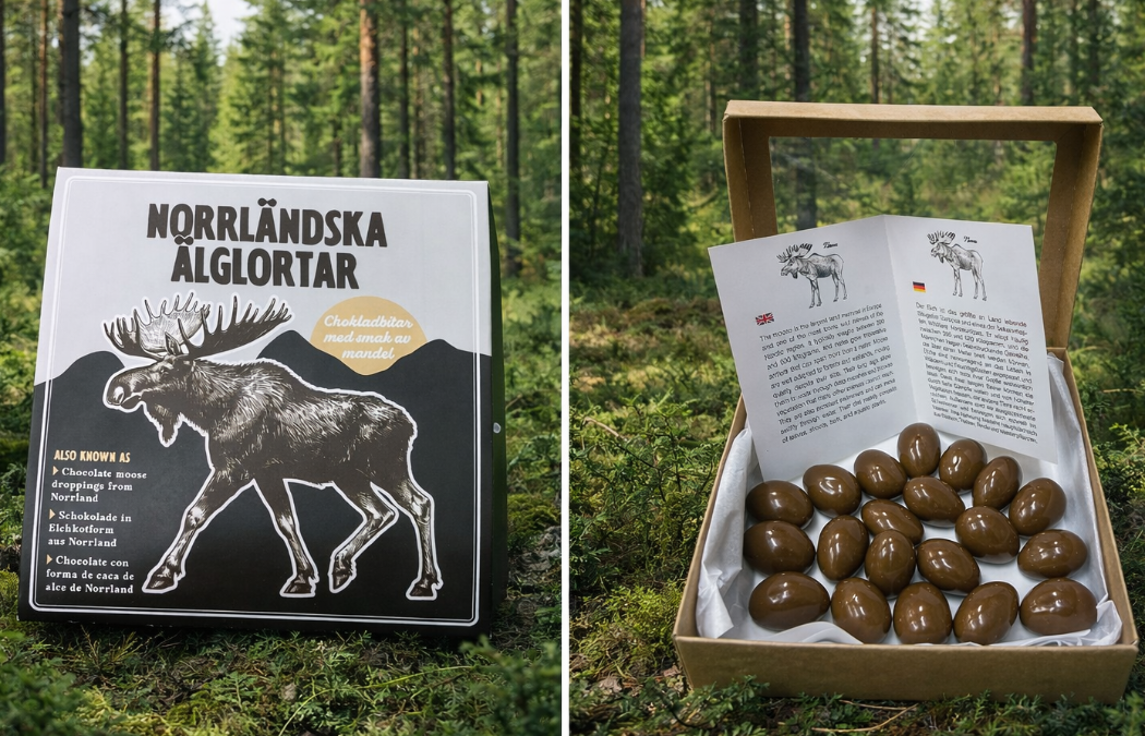 Produkten är framtagen för att alla ska kunna njuta av äkta norrländska smaker i en elegant och modern form. Genom att förena hantverk, kvalitet och utseende. Vår choklad efterliknar så kallade älglortar.