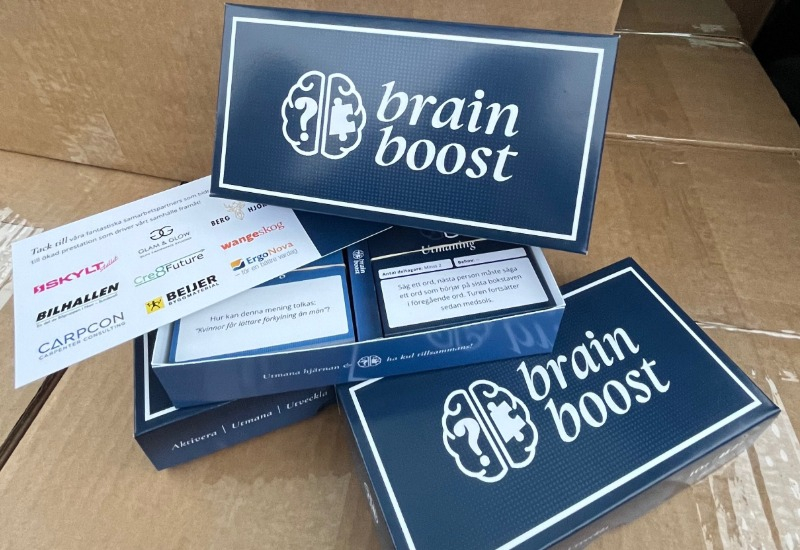 Produkten består av en fysisk box fylld med kluringar och utmaningar i kortformat som utmanar hjärnan på ett roligt och stimulerande sätt. Innehållet är brett och varierat för att passa olika åldrar, målgrupper och svårighetsnivåer. Korten är framtagna för att fungera både enskilt och i grupp, vilket uppmuntrar samarbete, kommunikation och gemenskap. Den fysiska formen gör produkten enkel att använda direkt, utan behov av teknik, skärmar eller förberedelser. Boxen är flexibel och kan användas i
