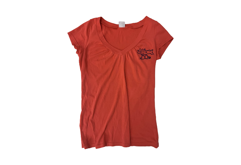 En ljus röd dam tröja i M storlek med en fin Sillman. Kontakta oss på Instagram för att köpa!