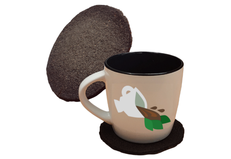 Vår affärsidé är att skapa ett vegetariskt läderliknande alternativt till traditonellt läder genom kaffesump. Vi bidrar till att skapa en cirkulär ekonomi genom återbruk och omvandling av avfall till värdefullt material. Vår första produkt är glasunderlägg som skärs ut ifrån ett större kaffelädersark.