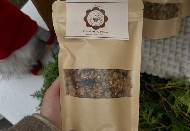 Vår klassiska granola är fylld med en god blandning av fröer, torkade bär , havre från en närliggande gård och andra goda smaksättningar som gör så att våran granola blir så himla god och mättande.
