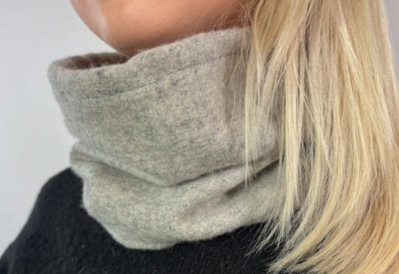 Vår produkt är en buff i 100% kashmir, där allt material kommer från secondhand-plagg. Buffen är designad för att uppfylla fler behov samtidigt, att ge värme, kännas bekvämt, och samtidigt vara ett stilrent plagg. Det finns användning av buffar i vardagen liksom för friluftsaktiviteter. Kashmir är lätt men mycket värmande, har hög andningsförmåga och reglerar kroppstemperaturen. De fina fibrerna gör materialet mjukt mot huden och med rätt skötsel är det slitstarkt och hållbart över tid.
