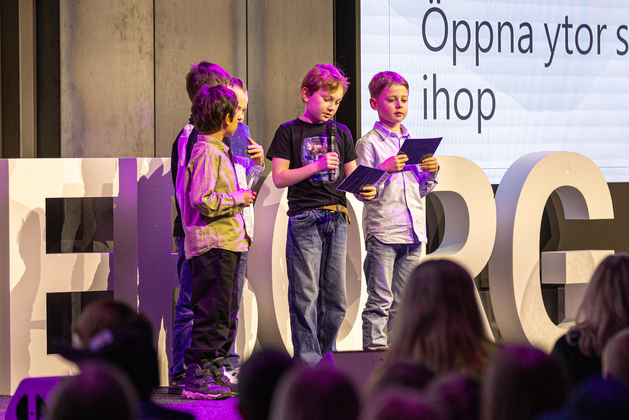 På scen pitchade eleverna sina idéer inför jury och publik, med stor inlevelse och kreativ bredd. Förslagen visualiserades genom modeller, ritningar och andra prototyper som visade hur eleverna tänker kring samhällsplanering och hållbar utveckling.