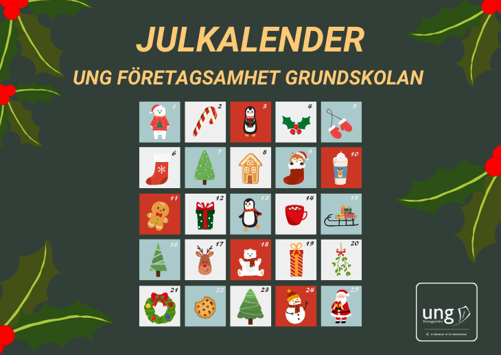 I december bjuder Ung Företagsamhet Göteborg på grundskolan in alla låg- och mellanstadieklasser till en spännande resa genom entreprenörskapets värld – varje dag fram till julafton!