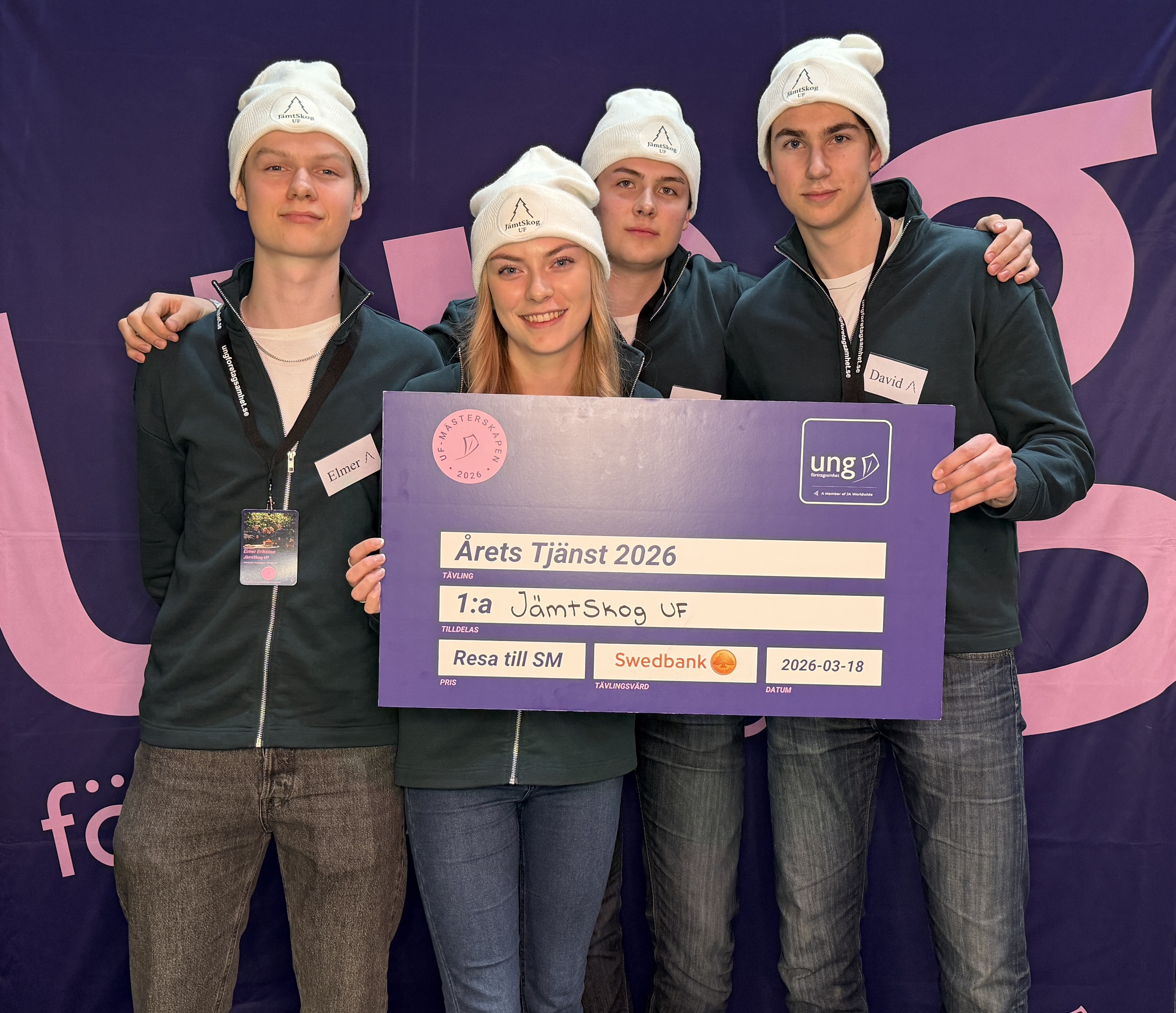 Motivering: ”Årets finalister visar verkligen vad ung företagsamhet handlar om — mod, hjärta och förmågan att göra verklig skillnad. Ni tre visar att tjänster kan vara både smarta, hållbara och fyllda av entreprenörsanda. Men årets vinnare utmärker sig genom att skapa en helhetslösning där produkt och tjänst smälter samman till ett cirkulärt, resurseffektivt och professionellt utfört koncept. Med imponerande försäljning, hög lönsamhet och ett genomförande som visar på både struktur, planering och ansvar tar de tjänstebegreppet till en ny nivå. Genom att låta hållbarhet driva varje steg och förvandla lokala värden till ren affärsnytta har det här företaget inte bara satt starka rötter — de har växt rakt upp i rampljuset. Vinnaren av årets tjänst 2026 är….Jämtskog UF"
