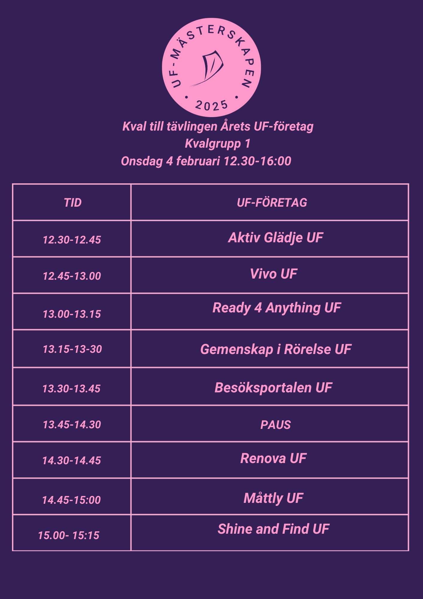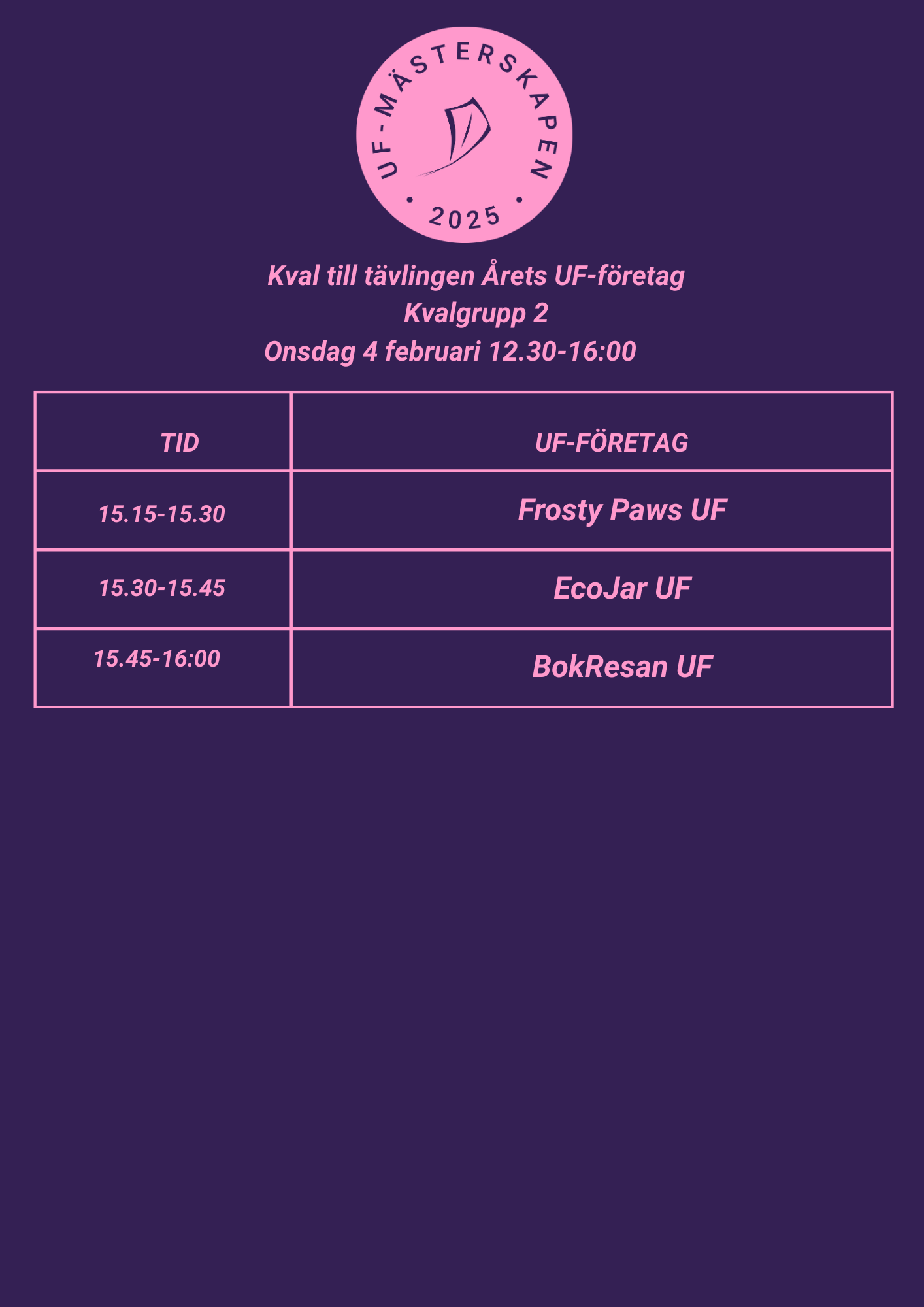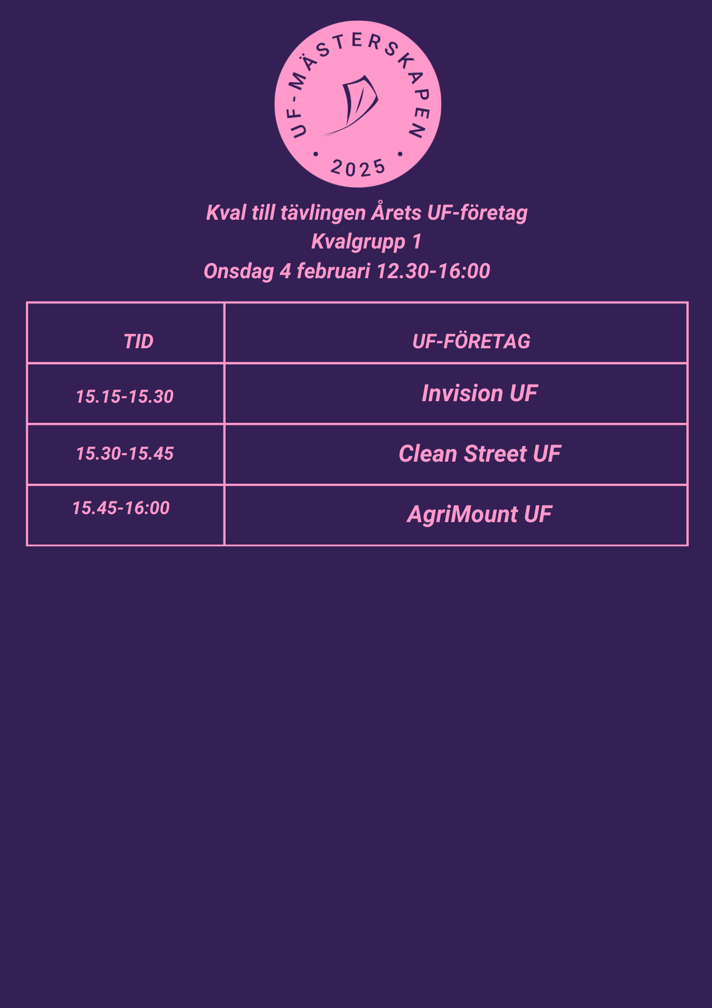 Onsdagen den 4:e februari är det dags för kvalet till Årets UF-företag! Evenemanget äger rum i hus Spektrum på Ebbepark i Linköping. Under kvalet kommer UF-företagen att pitcha sina affärsidéer inför en jury.