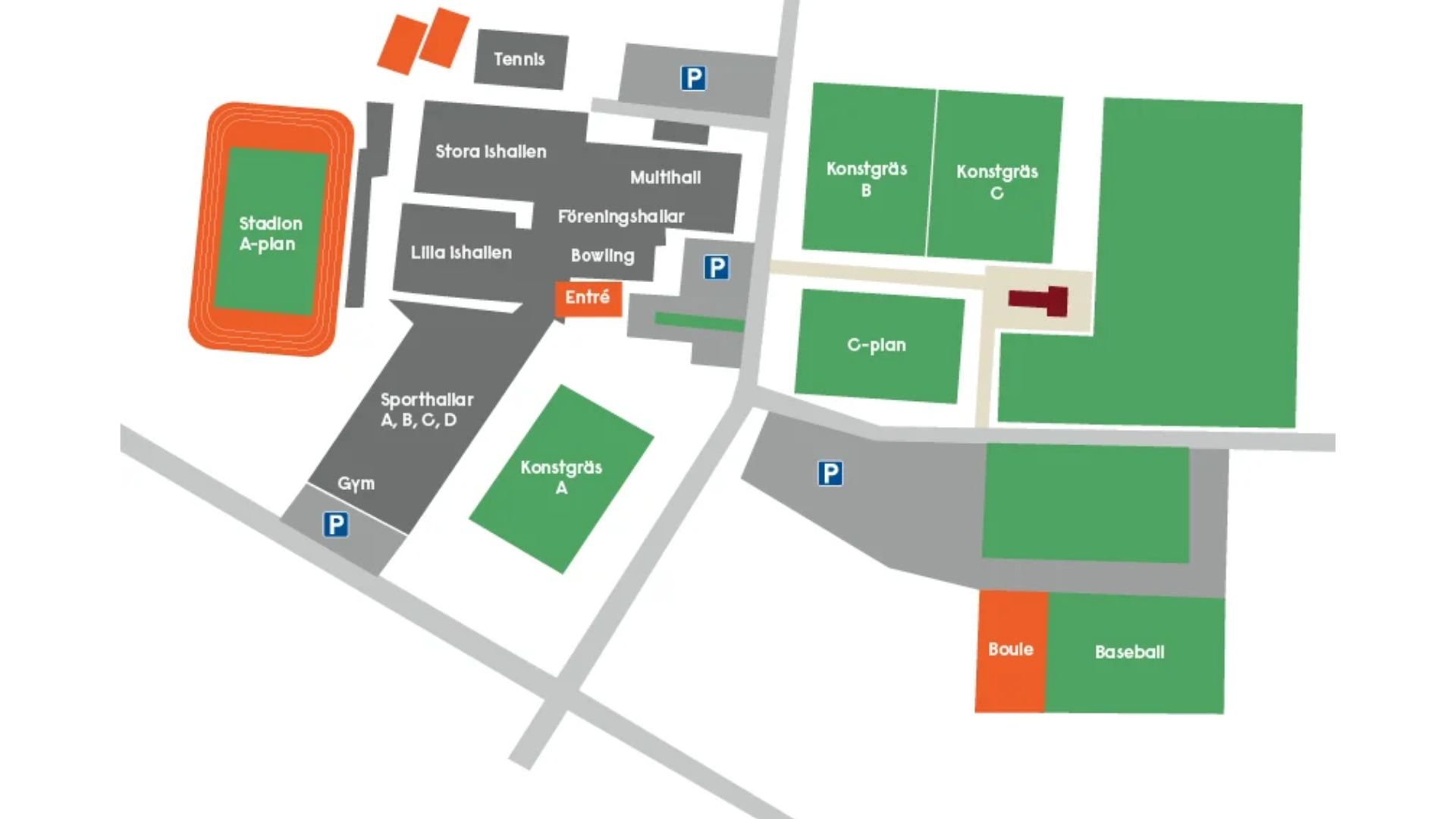 Fri parkering på markerade platser i anslutning till Rosvalla Arena.