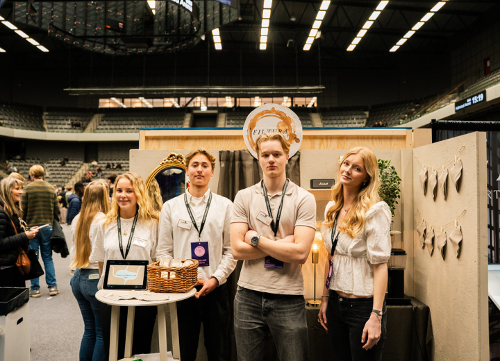 Klockan 12 öppnades UF-mässan för allmänheten, då hade de flesta UF-företag jobbat på i drygt två timmar med att fixa sina montrar och stå redo. Och många var det som ville ta chansen att se vad årets deltagare på UF-mässan hade för affärsidéer. Embracelet UF, med Klara Berg Nilsson, Sara Gajic och...