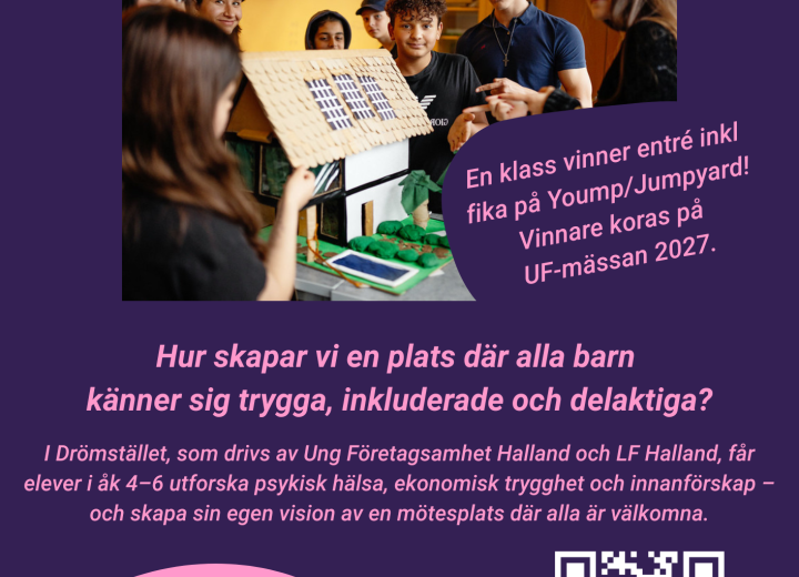 I Drömstället, som drivs av Ung Företagsamhet i Halland och LF Halland, får elever i årskurs 4–6 utforska hur psykisk hälsa, ekonomisk trygghet och känslan av innanförskap hänger ihop – och hur vi tillsammans kan bygga en bättre framtid. Anmäl din klass för att vara med i höstens viktigaste projekt...
