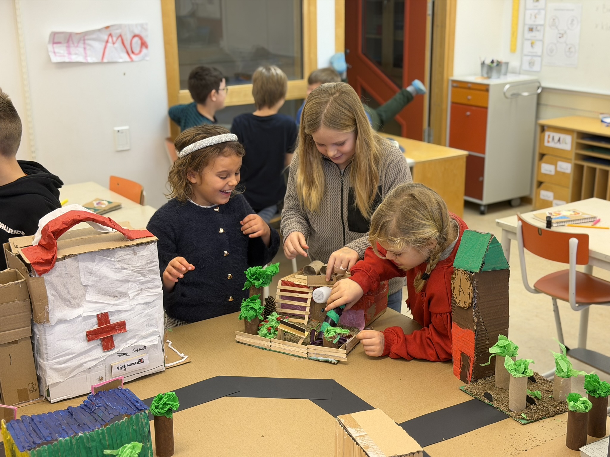– Det väcker ett jättestort engagemang hos eleverna och också intresset. När de bygger så pratar eleverna också om vad de har fått till sig. Som när vi var runt på en vandring i byn och vi såg olika saker som de sen byggde. La du märke till det? Varför har de ingången där? Eleverna pratar kring det och samtalar mellan varandra på deras nivå. De repeterar också kunskapen.