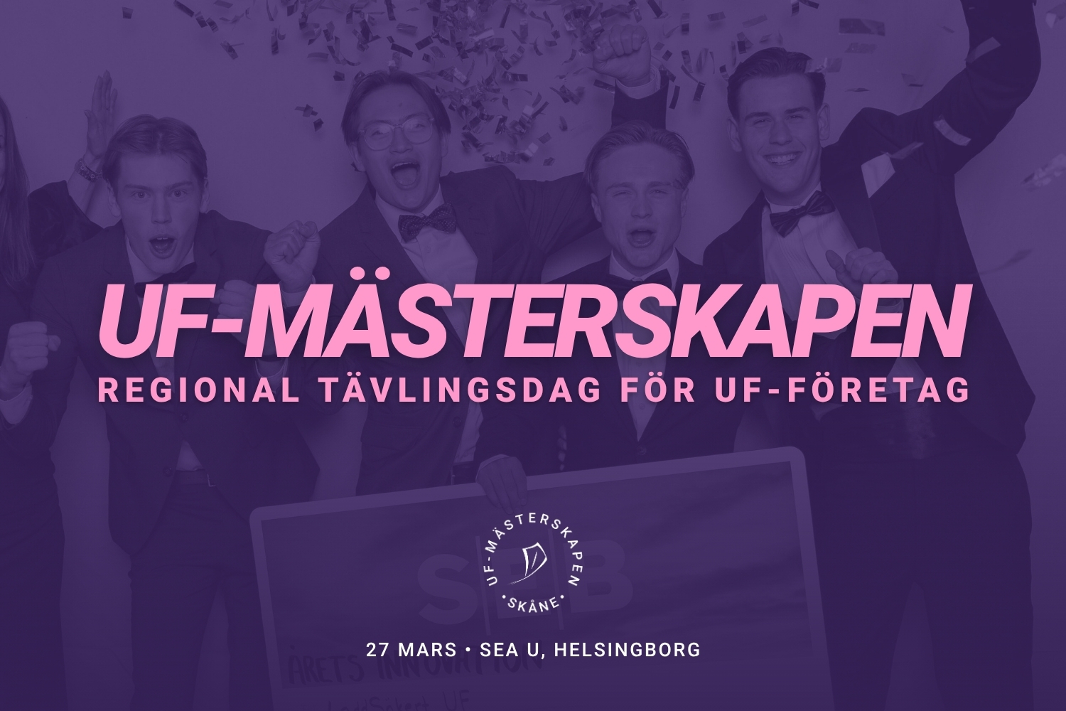 Den 27 mars ska Skånes främsta UF-företagare prisas! Finalen i UF-Mästerskapen innebär en heldag, då ett hundratal av Skånes mest drivna gymnasieentreprenörer pitchar inför jurys, bestående av personer från det skånska näringslivet. Dagen rundas av med en spektakulär prisutdelning där vi bland annat korar Årets Säljare, Årets UF-lärare, Årets Tjänst och givetvis Årets UF-företag.