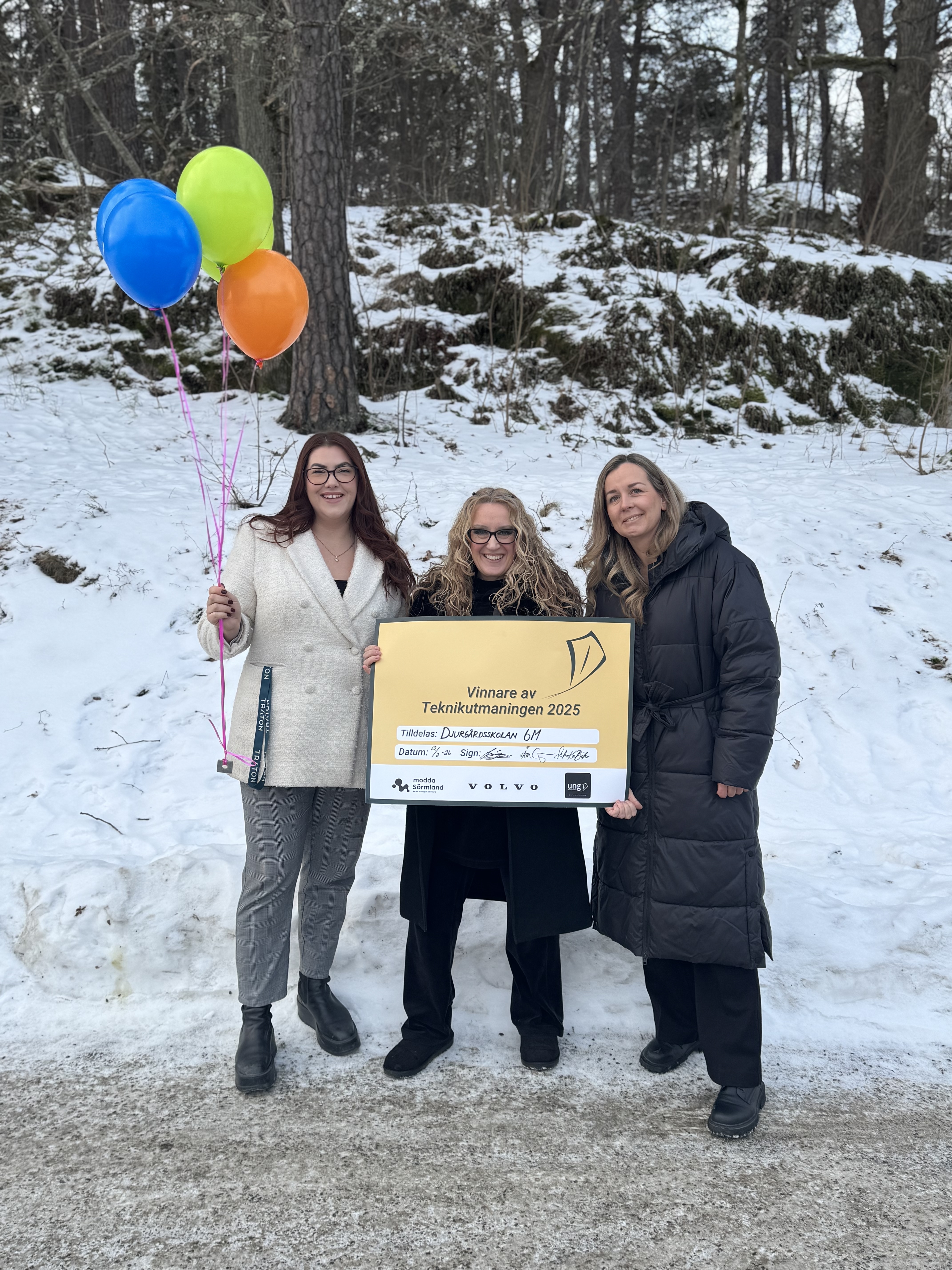 Den 12 februari besökte vi, tillsammans med Åsa Sergelius från Volvo CE och Sofie Sandvik från Modda Sörmland, de vinnande klasserna för att överraska och uppmärksamma deras fina insatser. Vinnarna får en klassresa till Tekniska muséet i Stockholm!