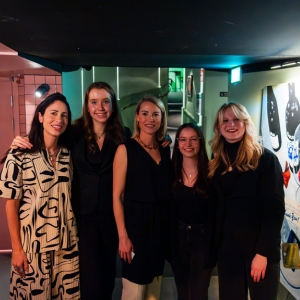 På bilden till höger syns Sunny Productions UF Alice Engelmark, Ronja Hässelbäck Eriksson och Emilia Lindfors Brännström tillsammans med drakarna Susanne Najafi och Sara Wimmercranz på en spelning i Stockholm. Det var UF-resan och deltagandet på UF-mässan i Norrbotten som ledde dem dit, till ett investerarmöte med tunga namn inom det svenska näringslivet.