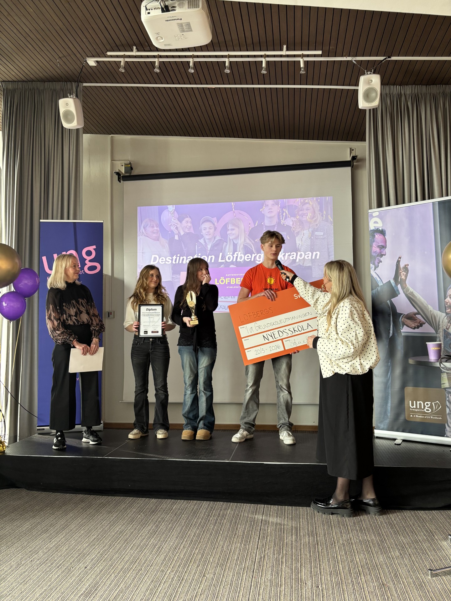 Nio kreativa, drivna och samarbetsstarka elevgrupper imponerade stort med sina idéer, presentationer och sitt engagemang. Finalen hölls på 10:e våningen i den ikoniska Löfbergsskrapan och vilken morgon det blev! Utsikten var fantastisk, stämningen var på topp och eleverna levererade sina pitchar med en energi som verkligen smittade av sig. Vinnarna i varje utmaning blev: