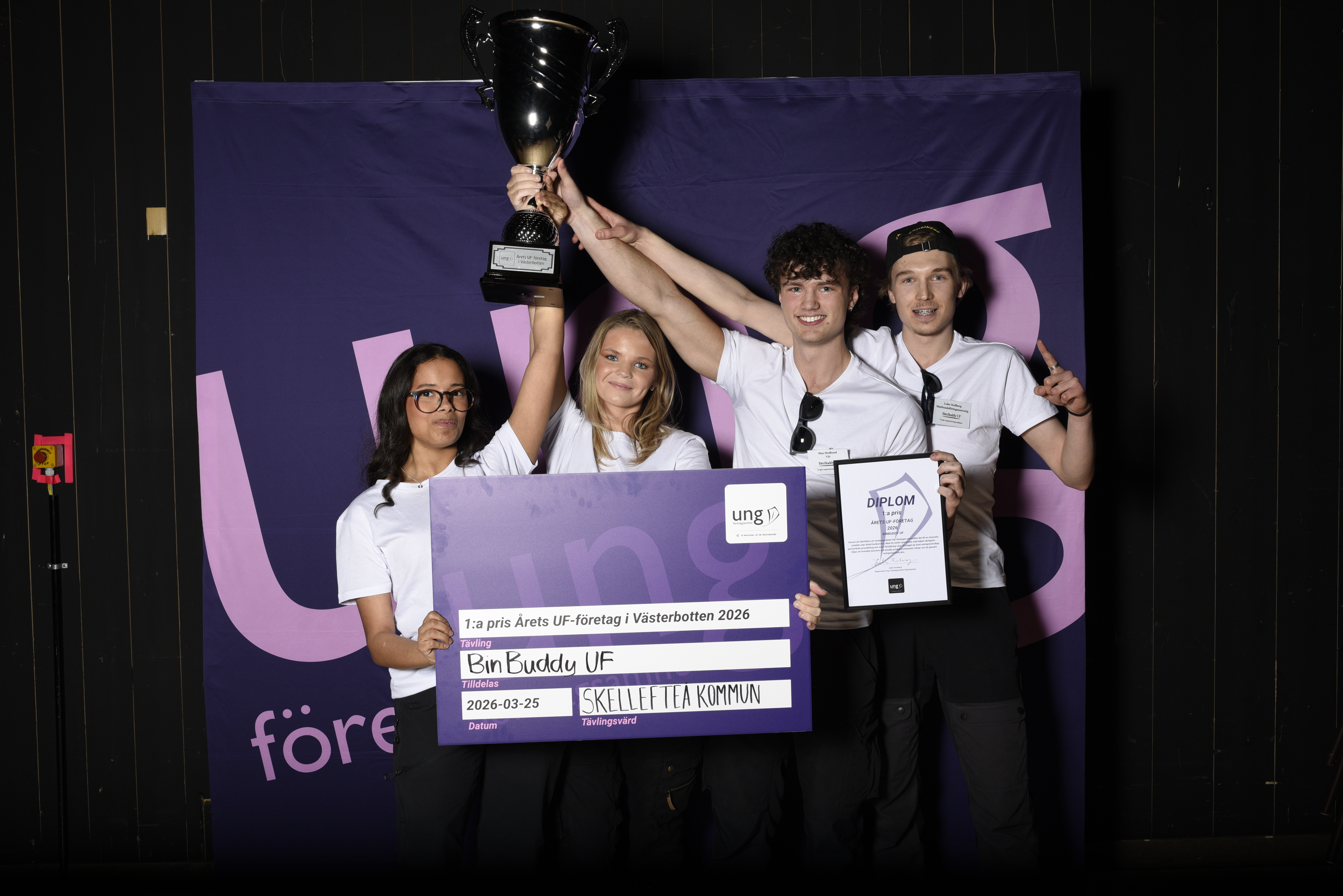 -Det känns helt sjukt, en riktig ära att få tilldelas priset som årets UF-företag i Västerbotten. Det har varit så sjukt många bra UF-företag i år så det har varit hård konkurrens. Det här är ett kvitto på att hårt jobb lönar sig Nu laddar vi om mot SM där vi redan har massor med idéer, säger BinBuddy UF i en intervju. Förutom vinst i årets UF-företag prisades UF-företaget som Årets affärsplan, Årets ekologiskt hållbara UF-företag och tilldelades ett tredjepris i årets innovation.